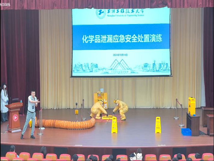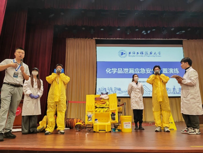 本次培训演练在松江校区志宏堂设置危险化学品泄漏处置应急演练现场,并通过校园网同步直播。活动邀请了江苏君源环保科技有限公司屈俊勋老师来校就“实验室事故预防与应急安全处理”进行辅导培训,围绕实验室安全的重要性、常见安全隐患及预防措施、个人防护装备的正确使用等多个方面进行讲解,还结合实验室实际事故案例与现场师生进行互动,阐述了实验室安全事故的危害性和防范的必要性,让师生对实验室危险和安全防护有了更为直观、深刻的认识。