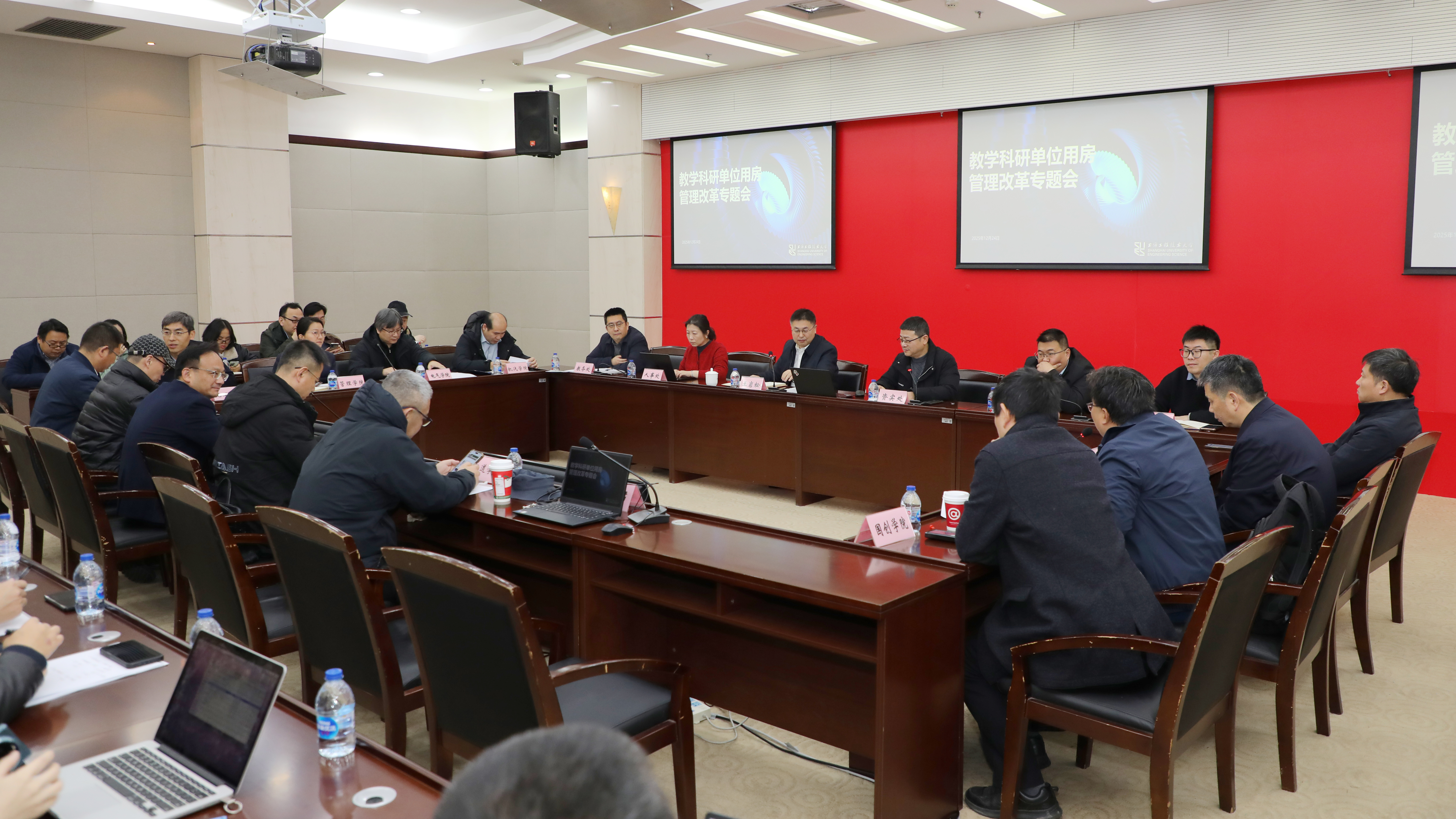 2025年12月24日上午,学校在图文信息中心第三报告厅召开教学科研单位用房管理改革专题会。资产与实验室管理处、人事处、教务处、科研处、研究生院等部门负责人,各教学科研单位院长、分管副院长、房产管理员参加会议,会议由王岩松副校长主持。